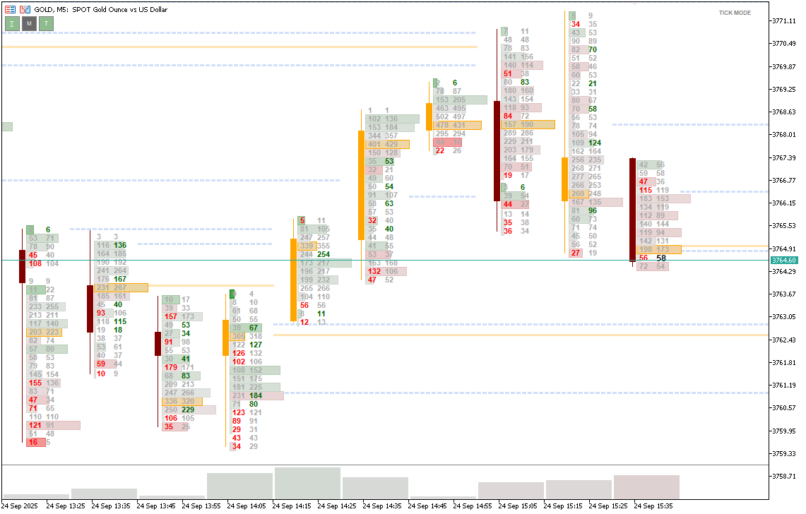 | Profile Calculation | InpTimeframe = PERIOD_M5(足迹周期),InpBarsCount = 30(显示30根足迹K线),InpValueAreaPercent = 70 |